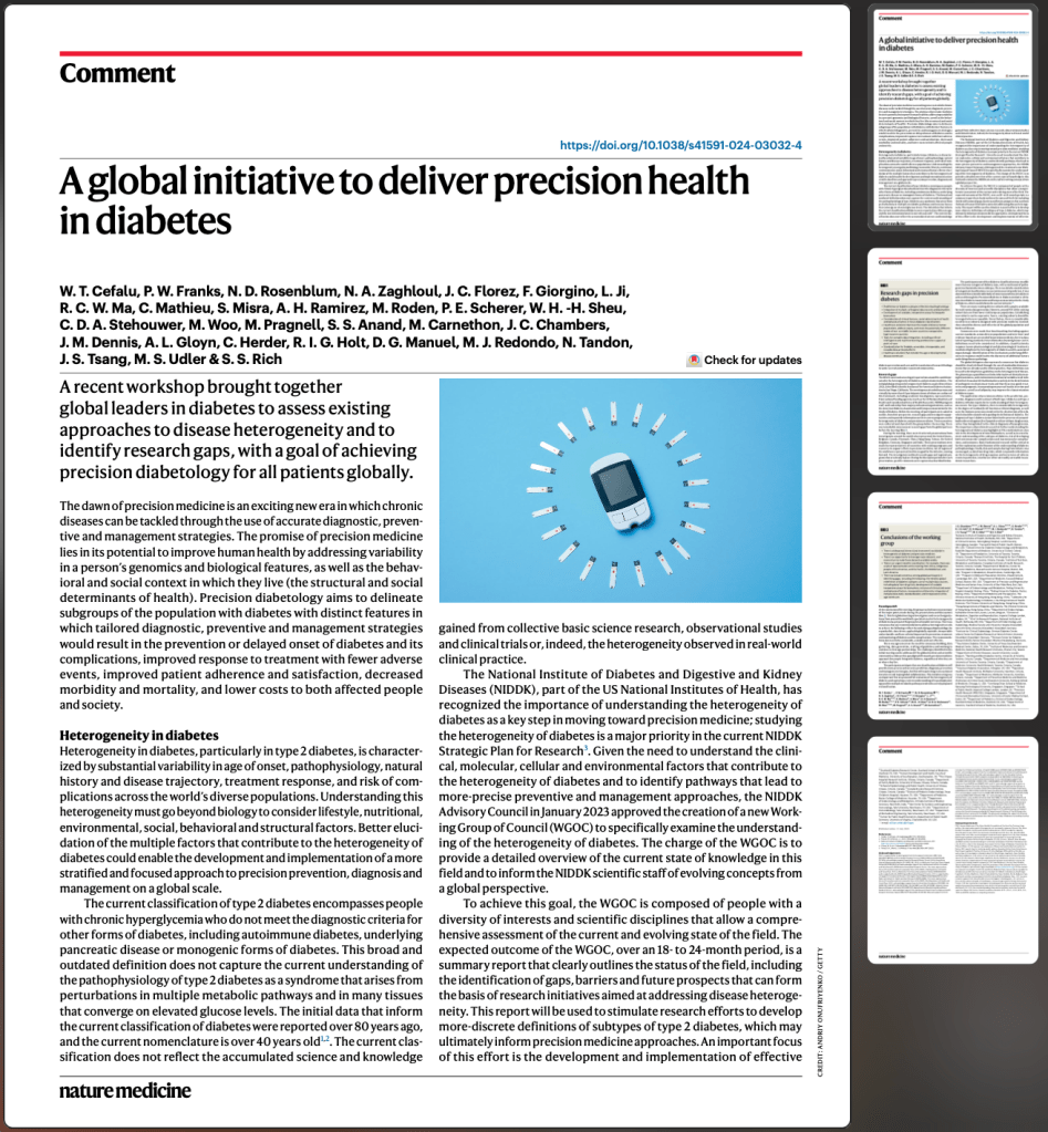 The NIDDK Heterogeneity in Diabetes Initiative is a global effort aimed at understanding the diverse nature of diabetes to develop precision medicine strategies. This initiative involves worldwide experts to explore the variability in diabetes onset, pathophysiology, treatment responses, and complications. By considering genetic, environmental, behavioral and other factors, the initiative seeks to refine diabetes classification and improve prevention, diagnosis, and treatment approaches. The goal is to deliver more effective prevention and care for people at risk of or living with diabetes worldwide.